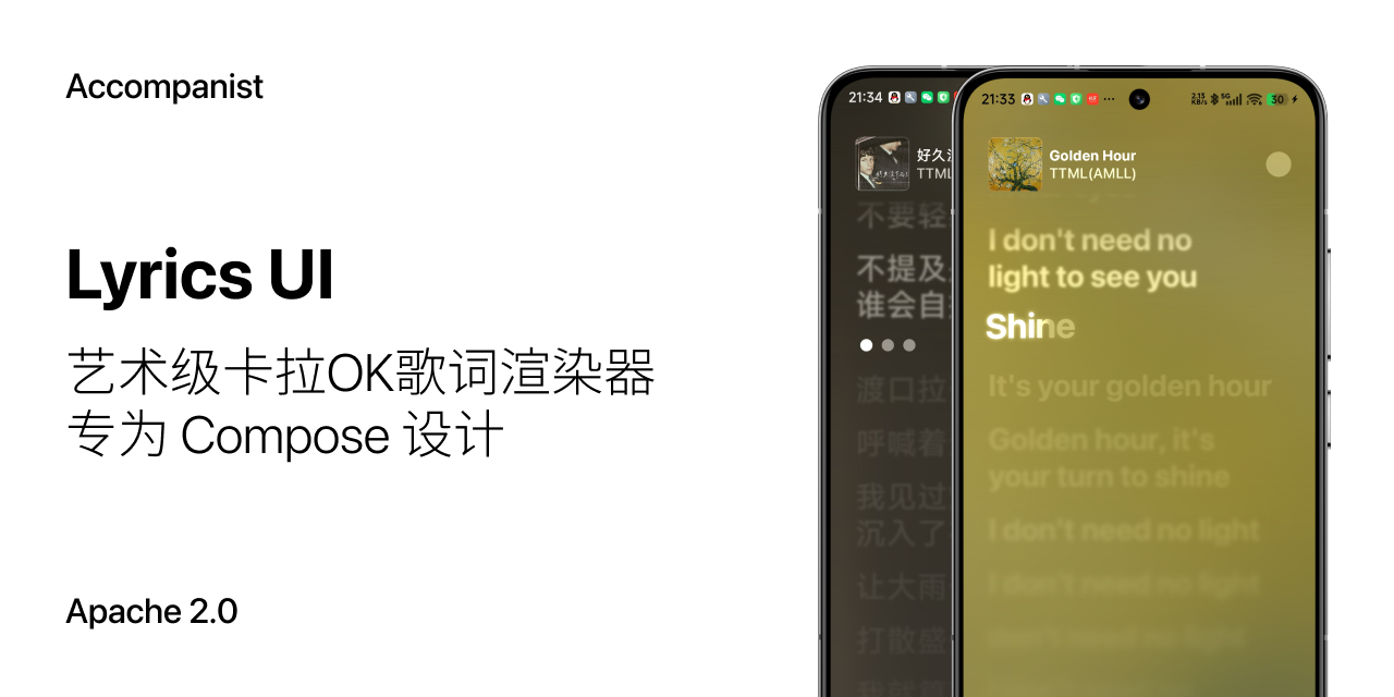 Accompanist Lyrics UI 是一个基于 Compose Multiplatform 和 Rust 构建的先进歌词渲染库。它专为音乐应用打造,提供高性能、视觉效果出色的卡拉OK 体验。